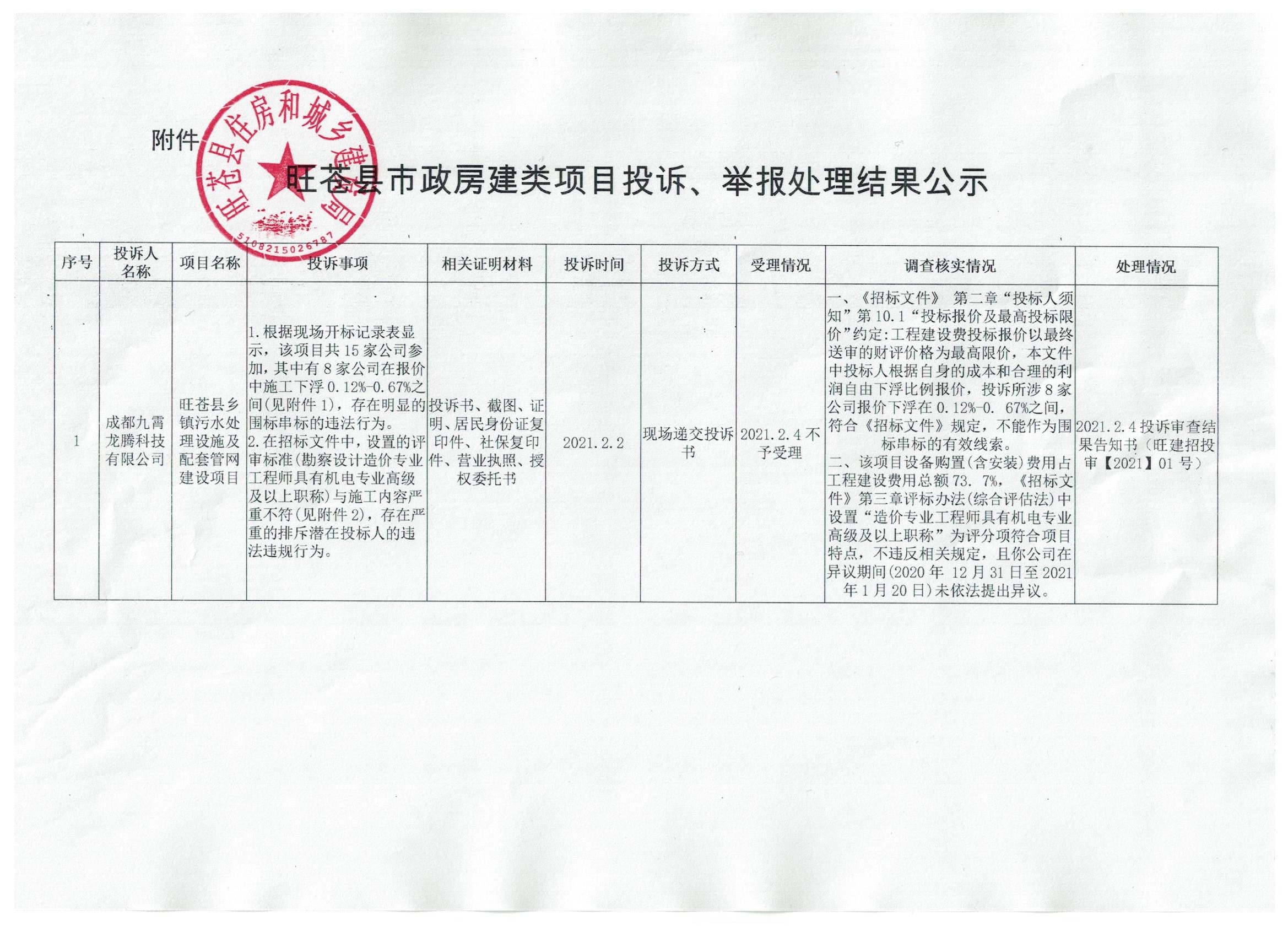 旺蒼縣市政房建類項(xiàng)目投訴、舉報(bào)處理結(jié)果公示