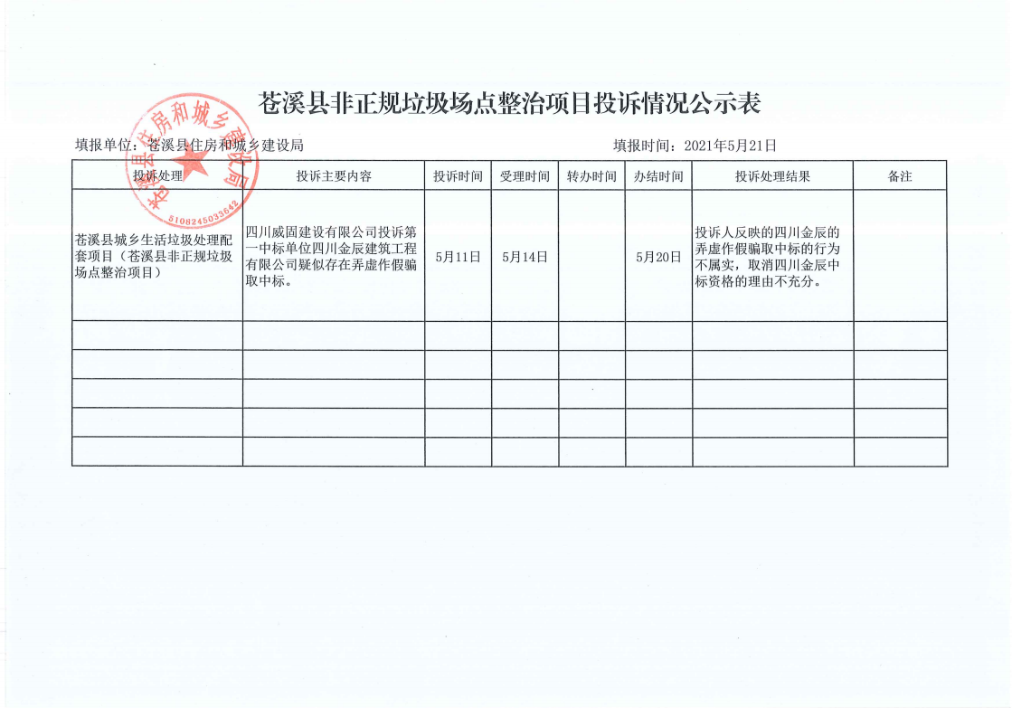 蒼溪縣非正規(guī)垃圾場(chǎng)點(diǎn)整治項(xiàng)目投訴情況公示