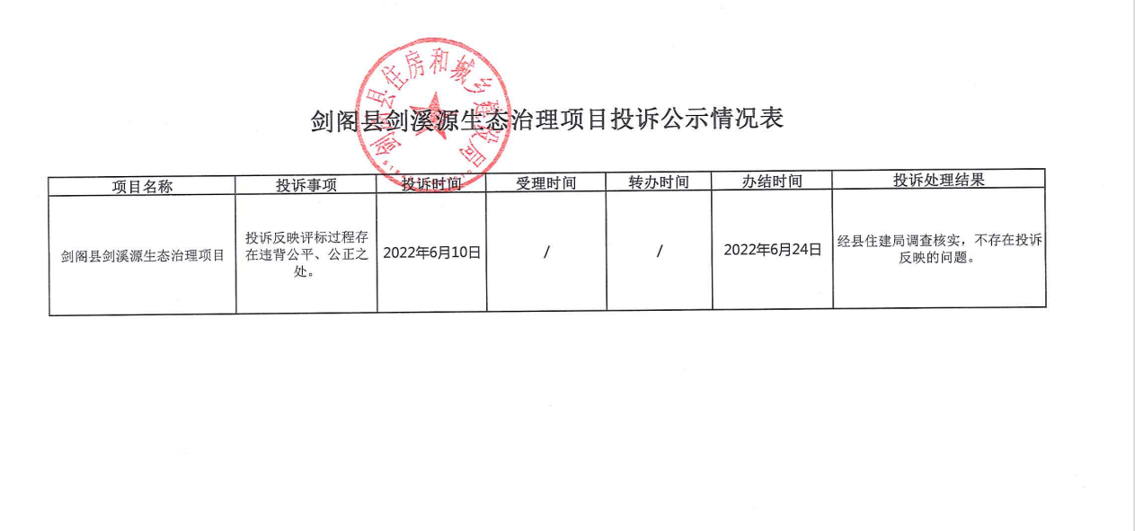劍閣縣劍溪源生態(tài)治理項(xiàng)目投訴公示