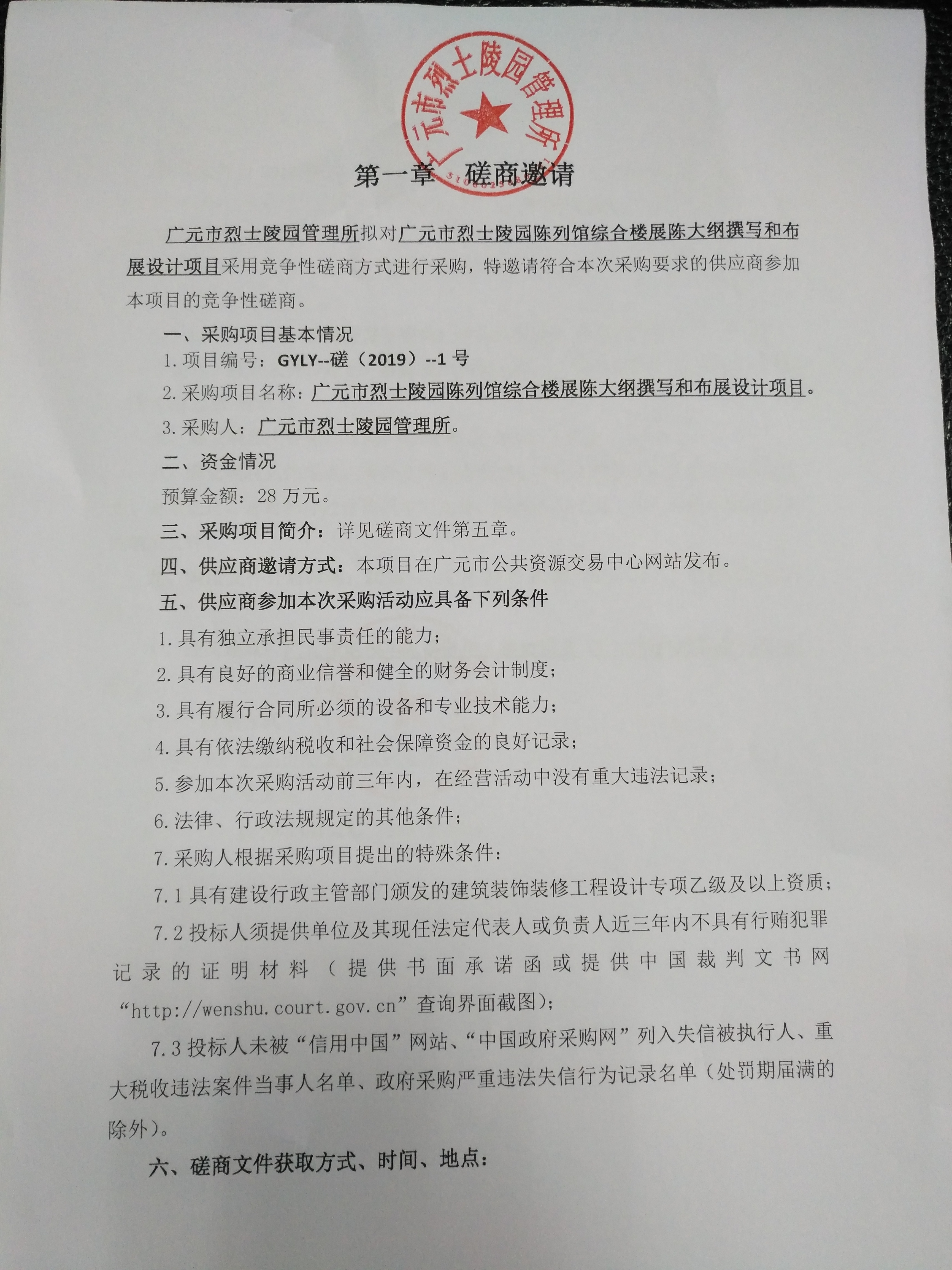廣元市烈士陵園管理所廣元市烈士陵園陳列館綜合樓展陳大綱撰寫和布展設(shè)計(jì)項(xiàng)目磋商邀請(qǐng)公告