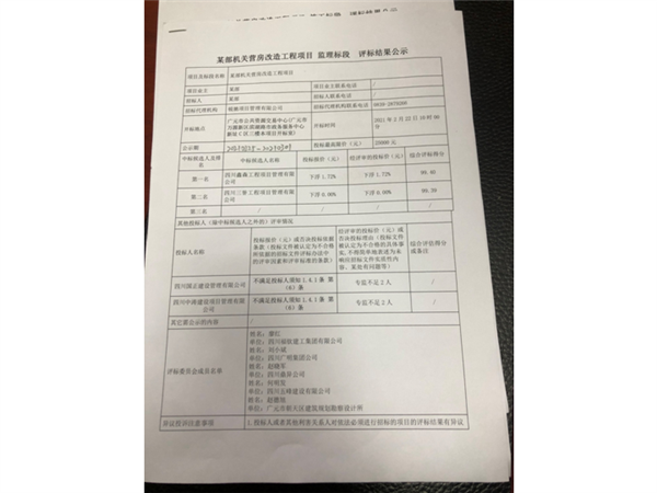 某部機(jī)關(guān)營(yíng)房改造工程項(xiàng)目施工及監(jiān)理評(píng)標(biāo)結(jié)果公示