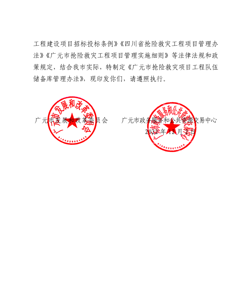 關(guān)于印發(fā)《廣元市搶險(xiǎn)救災(zāi)項(xiàng)目工程隊(duì)伍儲(chǔ)備庫(kù)管理辦法》的通知.pdf